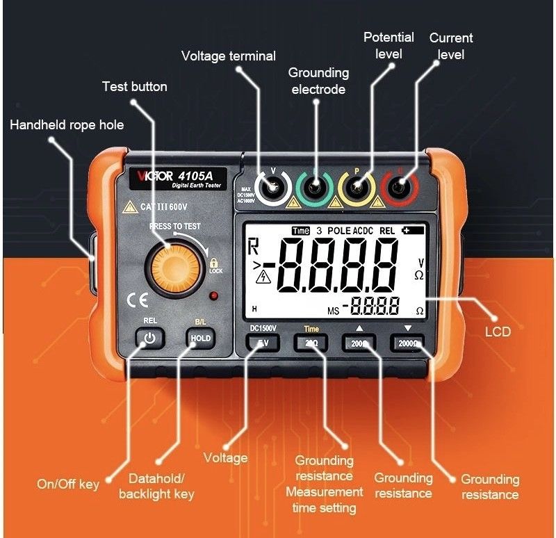 Вимірювач опору заземлення Victor 4105A